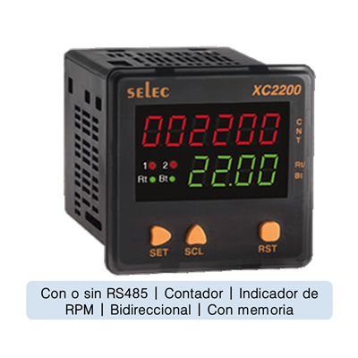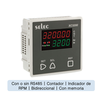 Para aplicaciones específicas SELEC se ha dado a la tarea de desarrollar elementos que cubran campos tan importantes como aquellos que tienen relación directa con el registro de la velocidad en RPM y conteo de precisión, sin mencionar las amplias posibilidades para lograr operaciones de conteo por lotes y otras más. Gracias a la posibilidad para hacer ajustes precisos y a la variedad de opciones de entrada, este equipo se considera indispensable para aplicarse en la captación de señalesde elementos con movimiento rotativo. Además de las opciones antes mencionadas, cabe destacar que si se desea anexar el dispositivo a un sistema centralizado, puede solicitarse un equipo con comunicación RS485.