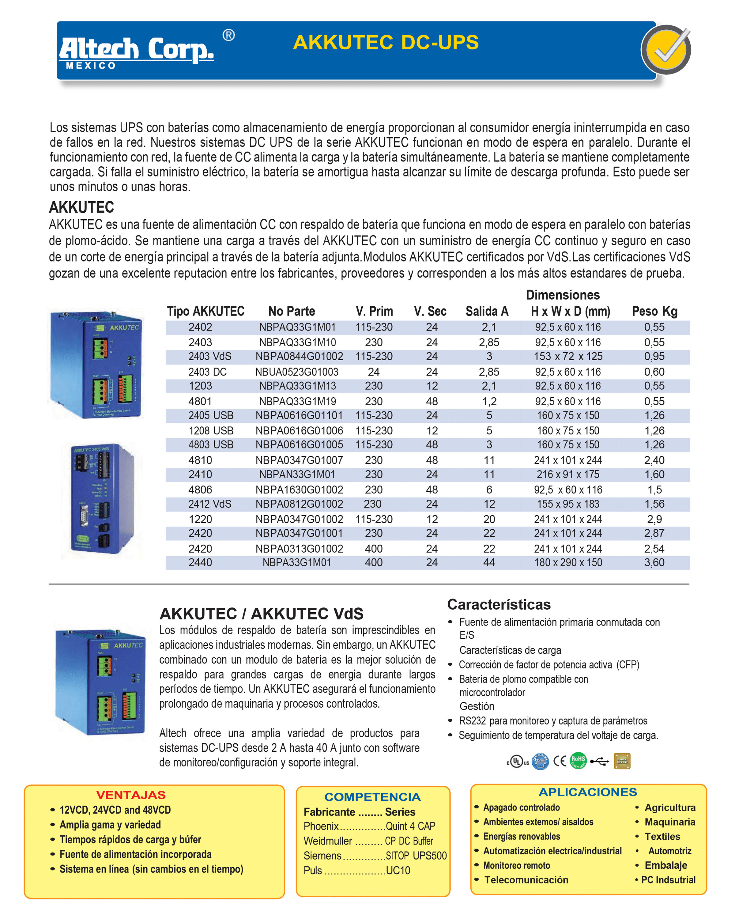 Altech Mexico ofrece una amplia variedad de productos para sistemas UPS-DC que van desde 2 A hasta 40 A, junto con software de monitoreo/configuración y soporte integral.